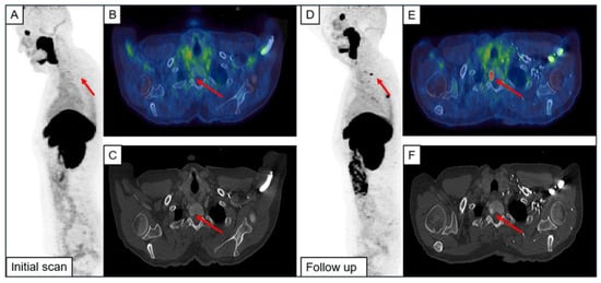- Eiber, M.; Herrmann, K.; Calais, J.; Hadaschik, B.; Giesel, F.L.; Hartenbach, M.; Hope, T.; Reiter, R.; Maurer, T.; Weber, W.A.; et al. Prostate Cancer Molecular Imaging Standardized Evaluation (PROMISE): Proposed miTNM Classification for the Interpretation of PSMA-Ligand PET/CT. J. Nucl. Med. 2018, 59, 469–478. [Google Scholar] [CrossRef]