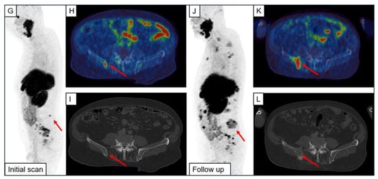 - Vollnberg, B.; Alberts, I.; Genitsch, V.; Rominger, A.; Afshar-Oromieh, A. Assessment of malignancy and PSMA expression of uncertain bone foci in [(18)F]PSMA-1007 PET/CT for prostate cancer-a single-centre experience of PET-guided biopsies. Eur. J. Nucl. Med. Mol. Imaging 2022, 49, 3910–3916. [Google Scholar] [CrossRef] [PubMed]