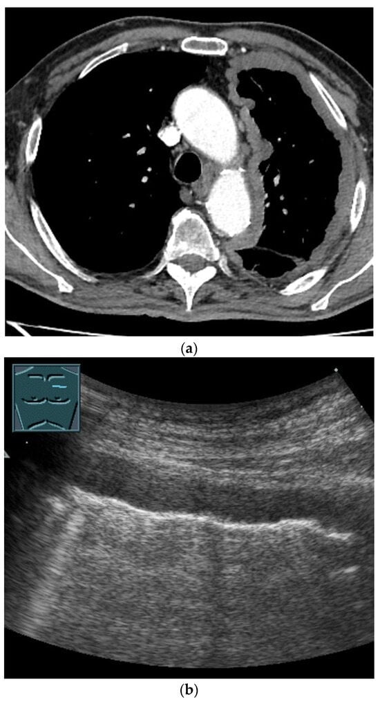 - Horn, R.; Gorg, C.; Prosch, H.; Safai Zadeh, E.; Jenssen, C.; Dietrich, C.F. Sonography of the pleura. Ultraschall Med. 2024, 45, 118–146. [Google Scholar] [CrossRef]