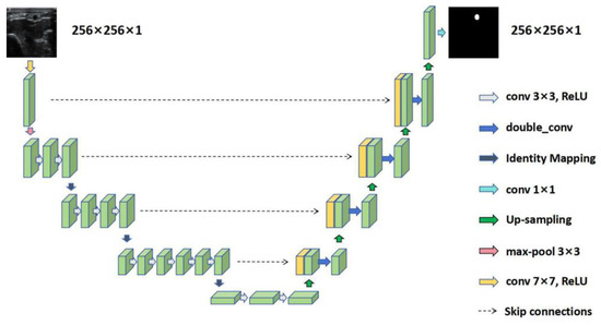 - Ashkani Chenarlogh, V.; Shabanzadeh, A.; Ghelich Oghli, M.; Sirjani, N.; Farzin Moghadam, S.; Akhavan, A.; Arabi, H.; Shiri, I.; Shabanzadeh, Z.; Sanei Taheri, M.; et al. Clinical Target Segmentation Using a Novel Deep Neural Network: Double Attention Res-U-Net. Sci. Rep. 2022, 12, 6717. [Google Scholar] [CrossRef]