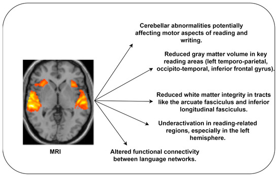 - Elnakib, A.; Soliman, A.; Nitzken, M.; Casanova, M.F.; Gimel’Farb, G.; El-Baz, A. Magnetic Resonance Imaging Findings for Dyslexia: A Review. J. Biomed. Nanotechnol. 2014, 10, 2778–2805. [Google Scholar] [CrossRef]