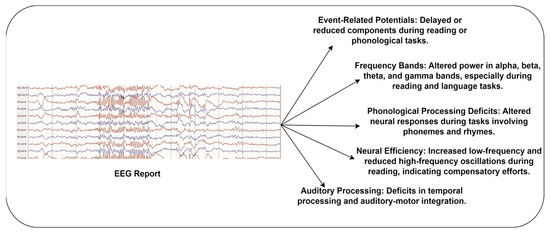 | Frid and Breznitz (2012) [42] | ERP | Discrete Fourier transformation and ML model | ML model | 32 | Accuracy: 86.3% | Complex data, including ERPs, require human intervention to analyze nuanced patterns, and automated analysis can overlook essential dyslexia patterns. |
