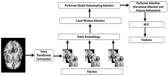 In medical imaging, features are essential for accurate diagnosis. Compared to the existing ViTs, CCT and TT can extract the AD features using the convolution layers. These transformers can converge faster during the training phase, resulting in rapid model deployment in clinical settings. The dual-branch architecture of TT captures local and global features. The combination of CCT and TT can provide a comprehensive representation of MRI images, enhancing the proposed AD classification performance. The proposed model can benefit from the CCT’s local sensitivity and TT’s global awareness. The complementary relationship can improve the capability of the proposed model to identify subtle variations in brain structure associated with AD stages. In addition, the diverse features can improve the model’s generalization across various patient populations and clinical conditions. However, these transformers demand a substantial computational resource. Therefore, the authors integrate Linformer with CCT and Performer with TT to limit the computational overhead. The hybrid transformers-based feature extraction enables the proposed model to identify and emphasize crucial regions relevant to AD detection.