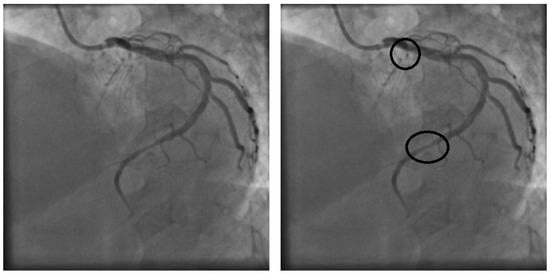 - Sameh, S.; Azim, M.A.; AbdelRaouf, A. Narrowed Coronary Artery Detection and Classification using Angiographic Scans. In Proceedings of the 2017 12th International Conference on Computer Engineering and Systems (ICCES), IEEE, Cairo, Egypt, 19–20 December 2017; pp. 73–79. [Google Scholar] [CrossRef]
