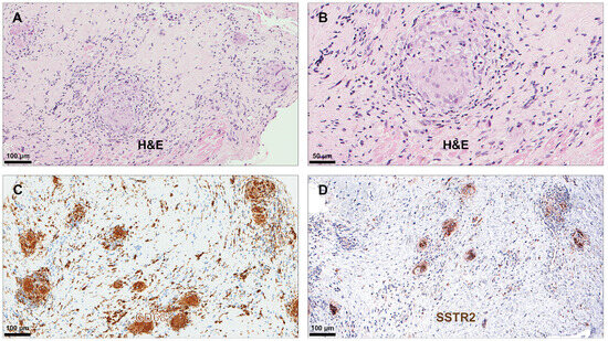 The following supporting information can be downloaded at: https://www.mdpi.com/article/10.3390/diagnostics14212374/s1, Figure S1: Grading of immunohistochemical staining intensity of inflammatory cells for somatostatin receptor subtype 2.