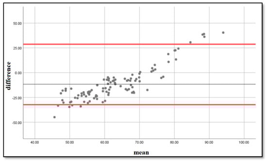 - Bland, J.M.; Altman, D.G. Statistical methods for assessing agreement between two methods of clinical measurement. Int. J. Nurs. Stud. 2010, 47, 931–935. [Google Scholar] [CrossRef]