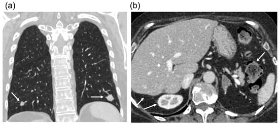 - Win, A.Z.; Aparici, C.M. A case of metastatic rectal squamous cell carcinoma initially diagnosed as lung cancer. J. Clin. Imaging Sci. 2015, 5, 22. [Google Scholar] [CrossRef] [PubMed]