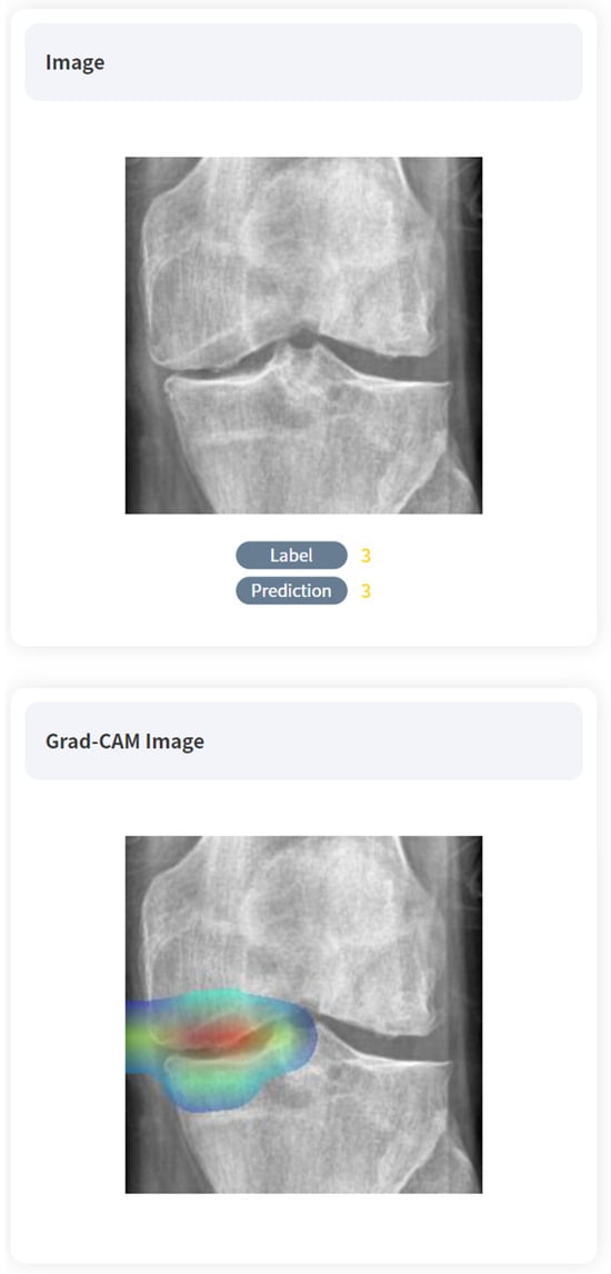 Referring to the Grad-CAM image, we can see that overall, the deep learning model was able to locate and grade the knee joint arthritis despite undergoing unsupervised learning. Positive samples are shown in