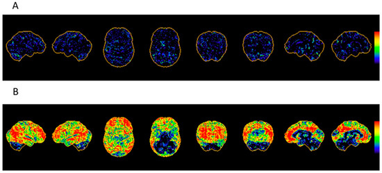 - Bentourkia, M.; Bol, A.; Ivanoiu, A.; Labar, D.; Sibomana, M.; Coppens, A.; Michel, C.; Cosnard, G.; De Volder, A.G. Comparison of regional cerebral blood flow and glucose metabolism in the normal brain: Effect of aging. J. Neurol. Sci. 2000, 181, 19–28. [Google Scholar] [CrossRef]