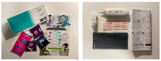 HIVST increases the chances of detecting HIV infection in heterosexuals. One of the studies, on the Polish population, was conducted at the turn of the year 2022/23 by the Wroclaw Health Center in cooperation with the website TyToTu.pl, where a link was provided allowing users to order a home HIV test. Users had to fill in shipping details and a short form. After a few days, the package was delivered to their homes by a courier. Inside was an HIV test along with instructions, informational leaflets, and condoms [] (Figure 4).