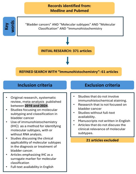 Chicago/Turabian StyleCano Barbadilla, Tatiana, Martina Álvarez Pérez, Juan Daniel Prieto Cuadra, Mª Teresa Dawid de Vera, Fernando Alberca-del Arco, Isabel García Muñoz, Rocío Santos-Pérez de la Blanca, Bernardo Herrera-Imbroda, Elisa Matas-Rico, and Mª Isabel Hierro Martín. 2024. "The Role of Immunohistochemistry as a Surrogate Marker in Molecular Subtyping and Classification of Bladder Cancer" Diagnostics 14, no. 22: 2501. https://doi.org/10.3390/diagnostics14222501