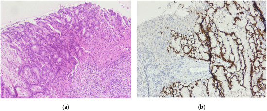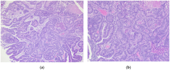 - Raspollini, M.R.; Nesi, G.; Baroni, G.; Girardi, L.R.; Taddei, G.L. Immunohistochemistry in the Differential Diagnosis Between Primary and Secondary Intestinal Adenocarcinoma of the Urinary Bladder. Appl. Immunohistochem. Mol. Morphol. 2005, 13, 358–362. [Google Scholar] [CrossRef]