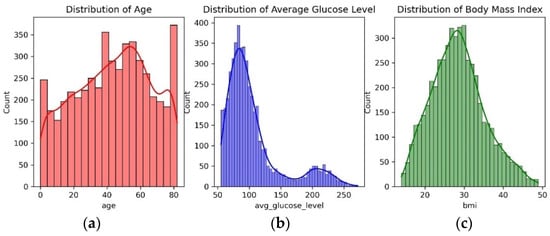 - Feature analysis was conducted to investigate the impact of demographic features such as age and gender; physiological metrics like blood pressure, body mass index (BMI), and glucose levels; medical history elements, including a history of hypertension, heart disease, and diabetes; and lifestyle factors such as smoking habits and physical activity on stroke prediction.