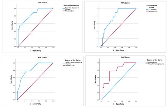 Another question that arises is whether 3D analysis is important in TV evaluation. TA is a complex three-dimensional structure, and the most suitable echocardiographic technique to obtain accurate measurements of TA size is 3D echocardiography [43,44,45]. Moreover, the size of the TA is critical in determining the need for concomitant TV interventions in patients undergoing left-sided valve surgery. Two-dimensional echocardiographic evaluation of the TA diameter underestimates the actual size due to its elliptical shape. Consequently, the annular diameter measured in a four-chamber (septal–lateral) view or a short-axis view (oblique) is less than the true anteroposterior diameter [46]. Moreover, when the TA dilates, it does so mostly in the anteroposterior direction, a direction that is not explored in the conventional 2D echocardiography apical four-chamber view [47]. The advent of 3D echocardiography enables detailed evaluation of the TV apparatus; nonetheless, the clinical value of preoperative 3D echocardiography is unknown in patients undergoing TAP. In our study, we used 3D echocardiography, and TA parameters were measured by the multiplanar reconstruction method, which allows for a much more accurate assessment of TV parameters. Our study demonstrated that the predictive capacity of 2D-assessed echocardiographic parameters was found to be lower when compared to their corresponding 3D parameters (four-chamber systolic diameter (2D) and septal–lateral systolic TA diameter (3D) yielded AUC values of 0.799 and 0.840; and TV tenting area (2D) and TV tenting volume (3D) resulted in AUC values of 0.711 and 0.778, respectively).