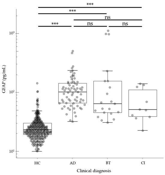 2.5. GFAP Assay in HC, AD, BT, and CI Samples