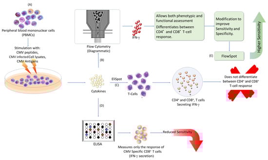 - Ye, Q.; Wang, J.; Chen, M.; Nie, W.; Zhang, H.; Su, X.; Ling, L.; Liu, X.; Liu, L.; Wang, C.; et al. Interferon-gamma FlowSpot assay for the measurement of the T-cell response to cytomegalovirus. Heliyon 2023, 9, e16792. [Google Scholar] [CrossRef]