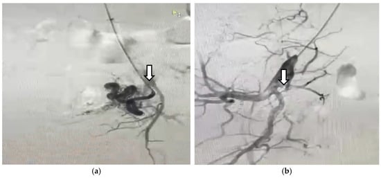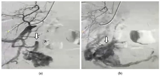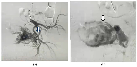 - Yang, J.J.; Xiang, Y.; Wan, X.R.; Yang, X.Y. Diagnosis and management of uterine arteriovenous fistulas with massive vaginal bleeding. Int. J. Gynaecol. Obstet. 2005, 89, 114–119. [Google Scholar] [CrossRef]