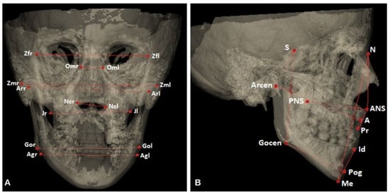 - Abuhijleh, E.; Aydemir, H.; Toygar-Memikoğlu, U. Three-dimensional craniofacial morphology in unilateral cleft lip and palate. J. Oral Sci. 2014, 56, 165–172. [Google Scholar] [CrossRef] [PubMed]