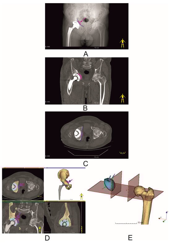 - Andrzejewski, K.; Domżalski, M.; Komorowski, P.; Poszepczyński, J.; Rokita, B.; Elgalal, M. Optimization of Revision Hip Arthroplasty Workflow by Means of Detailed Pre-Surgical Planning Using Computed Tomography Data, Open-Source Software and Three-Dimensional-Printed Models. Diagnostics 2023, 13, 2516. [Google Scholar] [CrossRef]