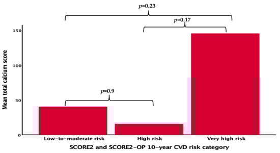 Differences in computed tomography findings according to the SCORE2 and SCORE2-OP risk score categories.
