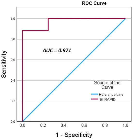 Table 3 presents the RC cohort results. A comparison analysis between SI values obtained from the RC-SI and those obtained from the Cobas standard laboratory SI (LAB-SI) test demonstrated that patients with a LAB-SI > 5 had a significantly higher mean RC-SI value than patients with a lower LAB-SI (p < 0.001).