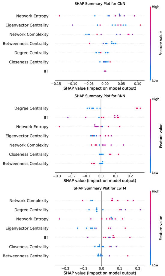 Closeness Centrality and Betweenness Centrality have lower feature values and minimal contributions of 0.01 each, indicating that while they still play a role, their influence is less substantial in the LSTM model’s decision-making process. Closeness Centrality, with a slightly negative feature value of −0.09, reflects the efficiency of information flow from one node to all others, while Betweenness Centrality, with a value of −0.11, captures the role of nodes as intermediaries in the network. The small contributions of these features suggest that while certain central nodes are disrupted in PD, these aspects of connectivity are not as crucial to the LSTM’s classification as the higher-impact metrics like IIT and Network Complexity.