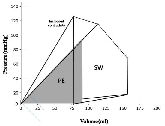 SW is reflected by the area of the PV loop and is proportional to both the pressure generated by LV contraction and the SV (Figure 1). The same SW can be performed by various loading conditions giving combinations of SV and intraventricular pressure. Changes in LV contractility can be appreciated by the counterclockwise rotation of the slope of the end-systolic PV relation (ESPVR). The slope of the ESPVR defines the LV end-systolic elastance. The crossing point where the slope of the ESPVR intersects with arterial elastance defines the ventricular–arterial coupling [17].