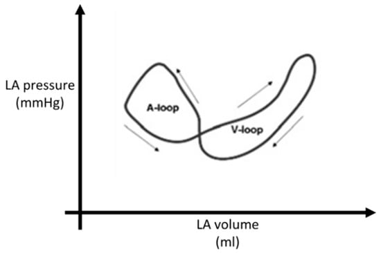 Knowledge of the LA pressure–volume relationship forms the basic understanding of LA mechanical function. The normal LA pressure–volume curve forms a double loop consisting of the A loop (which represents the LA active function) and V loop (which corresponds to passive atrial filling) (Figure 5) [51]. However, invasive measurements are required to evaluate this relationship.