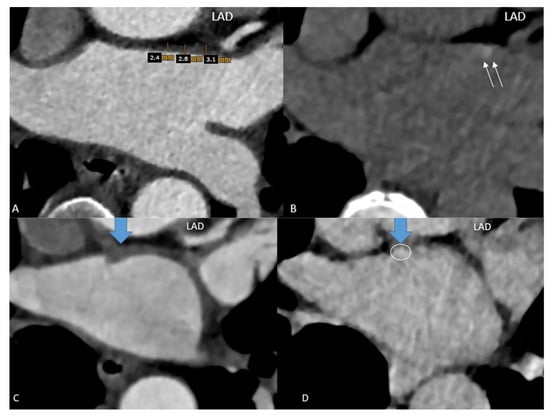Scan II LE-CT: Axial LE-CT images were co-axially aligned with the CTA datasets on two screens. The left main and proximal left anterior descending (LAD) coronary arteries served as landmarks for co-axial image alignment (Figure 1).