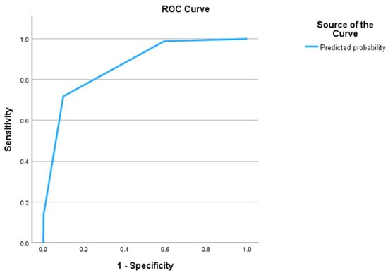Binomial logistic regression was performed to determine the effects of TR level and high-risk US features such as PEF, a very hypoechoic appearance, and suspected extrathyroidal extension on the cancer risk in thyroid nodules. Taller-than-wide shape was not included in the model, as this was not significant for cancer prediction when nodules of all sizes were evaluated collectively. The regression model was significant, with χ2(4) = 193 and p < 0.001. The model explained 40% (Nagelkerke R2) of the variance in cancer and correctly classified 92.6% of cases. Its sensitivity was 14.1%, its specificity was 99.8%, its positive predictive value was 85.7%, and its negative predictive value was 92.7%. In the multivariate analysis, the ORs for cancer were as follows: