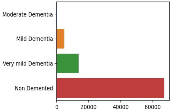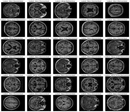 The OASIS (Open Access Series of Imaging Studies) (https://www.oasis-brains.org/ (accessed on 15 August 2024)) dataset is a widely used collection of brain imaging data and is primarily used to focus on understanding and diagnosing Alzheimer’s disease. The dataset contains structural brain MRI scans, along with clinical and demographic information, and has been instrumental in advancing research in Alzheimer’s disease detection and neuroimaging.
