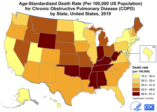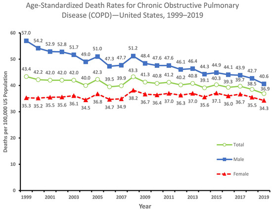 A graph of COPD age-standardized death rates by gender in the USA [1].