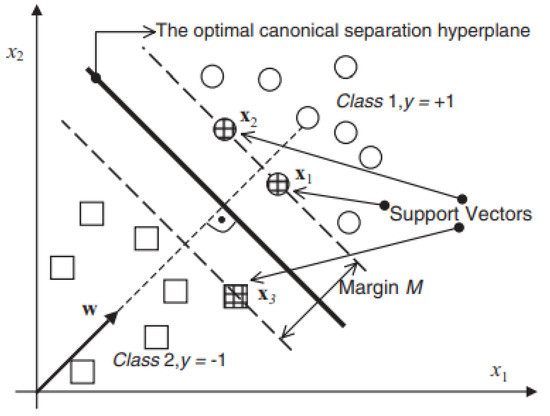 The SVM classifier and optimal separation hyperplane [37].