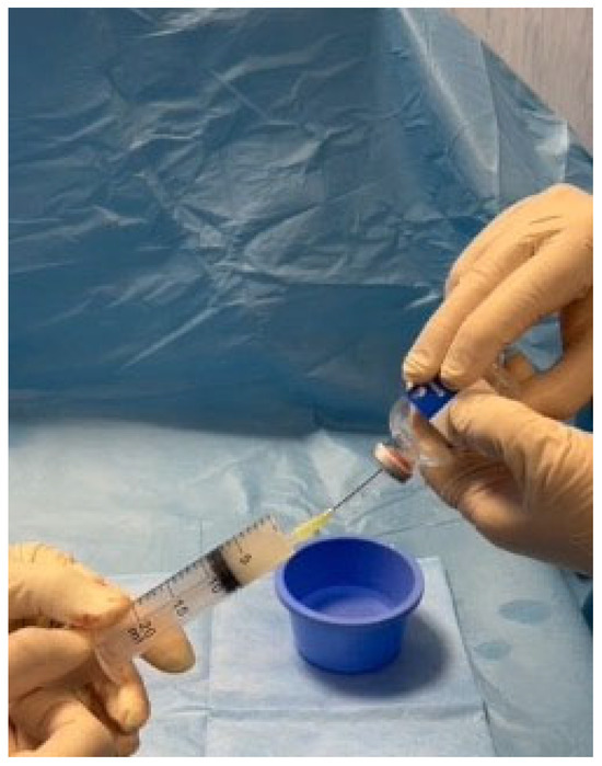 Embocept-S® particles were prepared by aspiring the full content of the Embocept-S® microparticles vial (7.5 mL) in a 20 mL syringe via a 19-gauge needle. Then, the particles were diluted with 12.5 mL of iodinated contrast agent and injected with a small 2.5–3 mL syringe via a microcatheter.