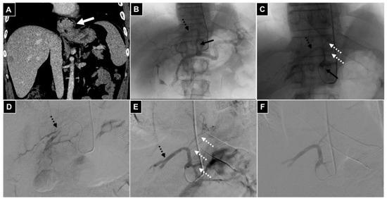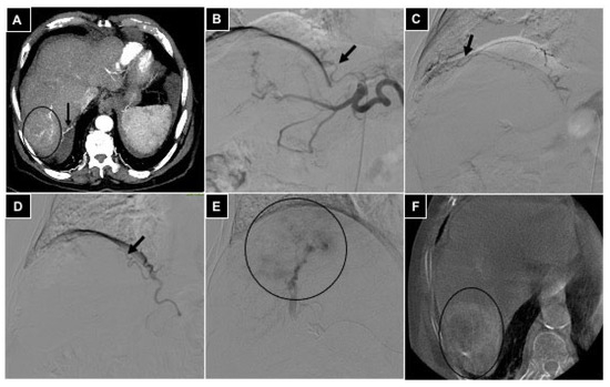 - Enriquez, J.; Javadi, S.; Murthy, R.; Ensor, J., Jr.; Mahvash, A.; Abdelsalam, M.E.; Madoff, D.C.; Wallace, M.J.; Avritscher, R. Gastroduodenal artery recanalization after transcatheter fibered coil embolization for prevention of hepaticoenteric flow: Incidence and predisposing technical factors in 142 patients. Acta Radiol. 2013, 54, 790–794. [Google Scholar] [CrossRef]
