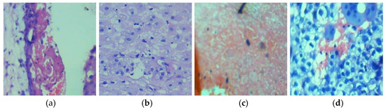 Hemorrhage [15] refers to bleeding or the escape of blood from a ruptured blood vessel into surrounding tissues. Hemorrhagic tissues are areas where bleeding has occurred, leading to the accumulation of blood in various tissues, which can be visible under a microscope in histopathology images. Hemorrhages can occur in different parts of the body and may result from trauma, vascular diseases, or medical conditions such as hypertension or blood clotting disorders. In histopathology, hemorrhagic tissues are generally identified by the presence of red blood cells (RBCs) outside the blood vessels, staining red or pink in Hematoxylin and Eosin (H&E)-stained slides. Pathologists manually identify hemorrhage by assessing the distribution and characteristics of the RBCs within the tissue. Automated detection of hemorrhage in histopathology images using AI and deep learning technologies offers several important advantages: AI models, especially those using deep learning, can detect subtle signs of hemorrhage that may not be easily visible to human pathologists, especially in early or microscopic forms (e.g., petechiae). This can help in the early diagnosis of conditions associated with vascular fragility or coagulopathies. Manual identification of hemorrhage can be subjective, leading to variability between pathologists. AI models can consistently and objectively detect hemorrhagic areas in tissue samples, reducing human error and increasing diagnostic confidence. Early, small-scale hemorrhages (e.g., microbleeds in the brain or in placental tissues) may be difficult to detect manually. AI models can be trained to spot these early signs, allowing for timely intervention in cases such as preeclampsia, cerebral small vessel disease, or early-stage cancer. Figure 5 presents a sample of hemorrhage tissue from the dataset.