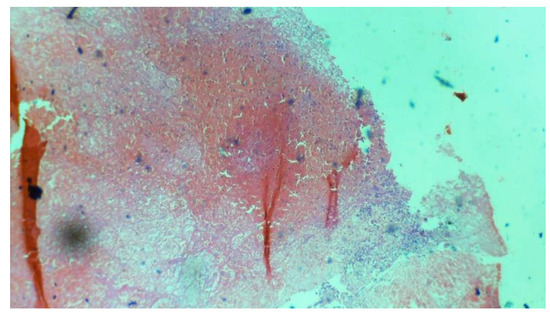 Example of hemorrhage tissue from the dataset captured under 10× magnification using a camera-connected microscope.