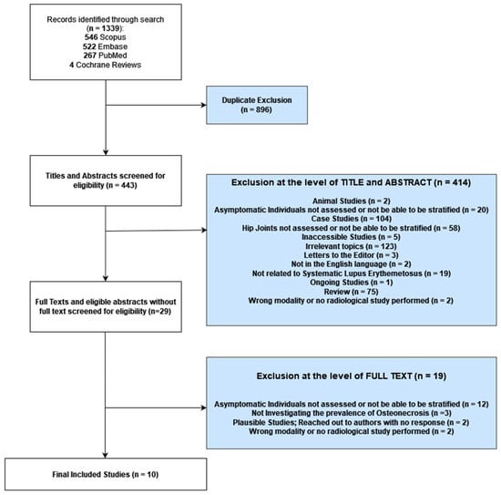 Ibad, H.A.; Ghotbi, E.; Kasaeian, A.; Levin, A.S.; Jones, L.C.; Anzai, Y.; Soltanolkotabi, M.; Kapoor, N.; Johnson, P.T.; Demehri, S. Screening for Asymptomatic Osteonecrosis of the Hip in Systemic Lupus Erythematous: A Systematic Review and Meta-Analysis of MRI-Based Prevalence. Diagnostics 2024, 14, 279. https://doi.org/10.3390/diagnostics14030279