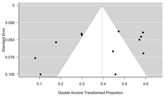 - Migliavaca, C.B.; Stein, C.; Colpani, V.; Barker, T.H.; Ziegelmann, P.K.; Munn, Z.; Falavigna, M. Prevalence Estimates Reviews—Systematic Review Methodology Group. Meta-analysis of prevalence: I2 statistic and how to deal with heterogeneity. Res. Synth. Methods 2022, 13, 363–367. [Google Scholar] [CrossRef]