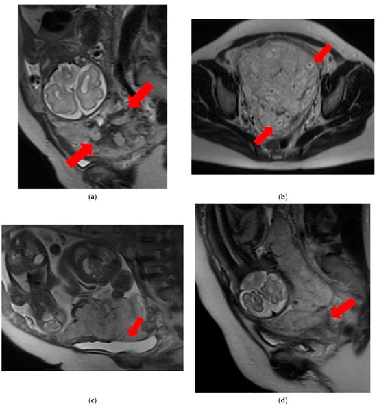Magnetic resonance imaging (MRI) has been established as a valuable diagnostic modality that enables detailed assessment of placental abnormalities []. The existing literature underscores the utility of MRI in providing insights into the extent and characteristics of abnormal placental implantation [,].