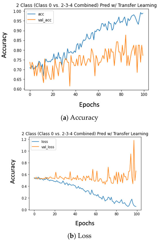 Accuracy and loss plots for class 0 vs. 2, 3, 4 combined.
