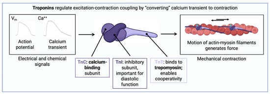 - Li, M.X.; Hwang, P.M. Structure and Function of Cardiac Troponin C (TNNC1): Implications for Heart Failure, Cardiomyopathies, and Troponin Modulating Drugs. Gene 2015, 571, 153–166. [Google Scholar] [CrossRef] [PubMed]