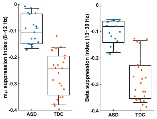 - Dumas, G.; Soussignan, R.; Hugueville, L.; Martinerie, J.; Nadel, J. Revisiting mu suppression in autism spectrum disorder. Brain Res. 2014, 1585, 108–119. [Google Scholar] [CrossRef] [PubMed]