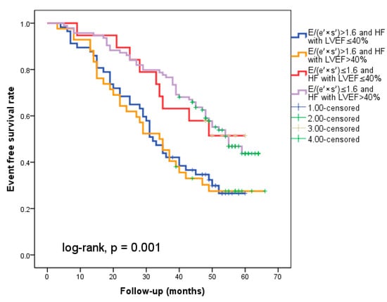 - Hirata, K.; Hyodo, E.; Hozumi, T.; Kita, R.; Hirose, M.; Sakanoue, Y.; Nishida, Y.; Kawarabayashi, T.; Yoshiyama, M.; Yoshikawa, J.; et al. Usefulness of a combination of systolic function by left ventricular ejection fraction and diastolic function by E/E′ to predict prognosis in patients with heart failure. Am. J. Cardiol. 2009, 103, 1275–1279. [Google Scholar] [CrossRef]