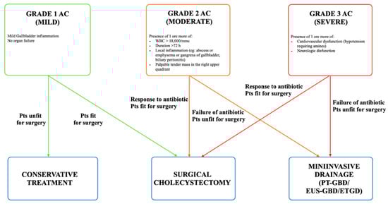 - Okamoto, K.; Suzuki, K.; Takada, T.; Strasberg, S.M.; Asbun, H.J.; Endo, I.; Iwashita, Y.; Hibi, T.; Pitt, H.A.; Umezawa, A.; et al. Tokyo Guidelines 2018: Flowchart for the management of acute cholecystitis. J. Hepatobiliary Pancreat. Sci. 2018, 25, 55–72. [Google Scholar] [CrossRef] [PubMed]