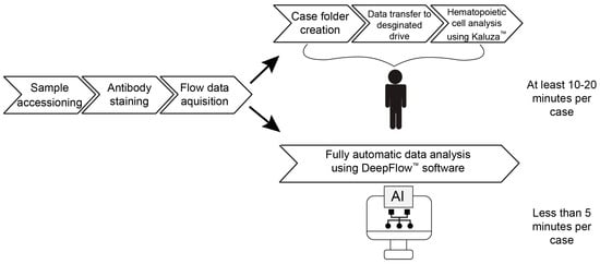 - Simonson, P.D.; Lee, A.Y.; Wu, D. Potential for Process Improvement of Clinical Flow Cytometry by Incorporating Real-Time Automated Screening of Data to Expedite Addition of Antibody Panels. Am. J. Clin. Pathol. 2022, 157, 443–450. [Google Scholar] [CrossRef] [PubMed]