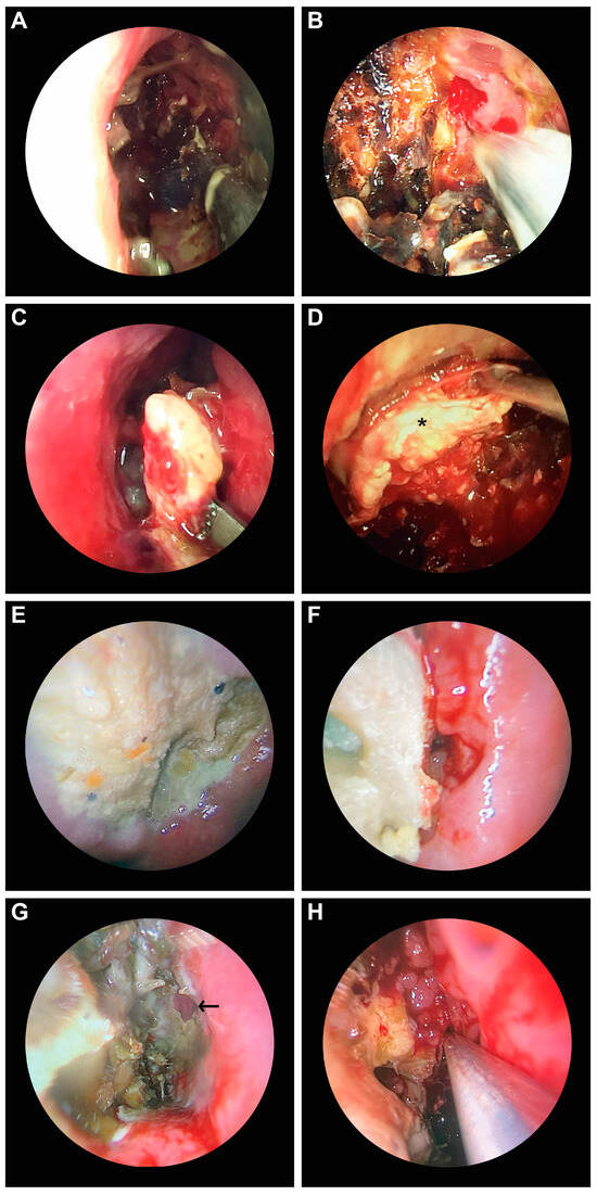 - Eldsouky, S.M.; Shahat, A.K.; Al-Tabbakh, A.M.; El Rahman, S.M.A.; Marei, Y.M.; Mohammed, L.A.; El-Shimi, O.S.; Abdelmotaleb, D.S.; Marei, Y.M.; Elsayed, M.S.A.E. Clinical and mycological investigations of post-COVID-19 acute invasive fungal sinusitis. Laryngoscope Investig. Otolaryngol. 2022, 7, 1780–1789. [Google Scholar] [CrossRef]