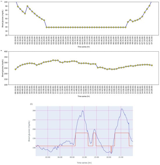 Graphical illustration of glycemic variability in a patient. (A) Hypoglycemic trend. (B) Hyperglycemic trend. (C) Overall glycemic trends.
