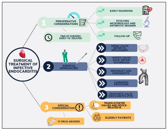 Chicago/Turabian StyleArjomandi Rad, Arian, Alina Zubarevich, Anja Osswald, Robert Vardanyan, Dimitrios E. Magouliotis, Ali Ansaripour, Antonios Kourliouros, Michel Pompeu Sá, Tienush Rassaf, Arjang Ruhparwar, and et al. 2024. "The Surgical Treatment of Infective Endocarditis: A Comprehensive Review" Diagnostics 14, no. 5: 464. https://doi.org/10.3390/diagnostics14050464