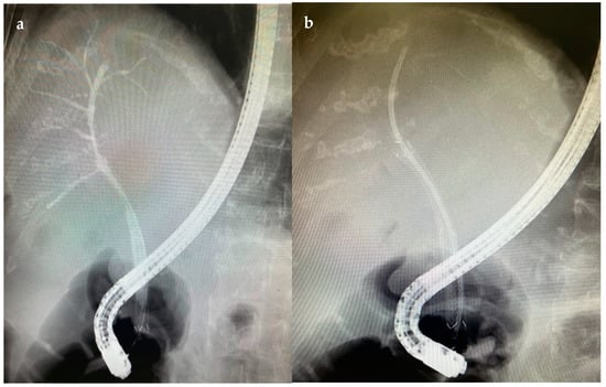 - Kawakami, H.; Kuwatani, M.; Onodera, M.; Haba, S.; Eto, K.; Ehira, N.; Yamato, H.; Kudo, T.; Tanaka, E.; Hirano, S.; et al. Endoscopic nasobiliary drainage is the most suitable preoperative biliary drainage method in the management of patients with hilar cholangiocarcinoma. J. Gastroenterol. 2011, 46, 242–248. [Google Scholar] [CrossRef]